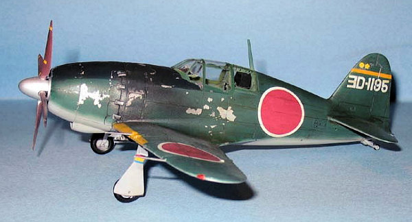 I double checked with the profile I found in Japanese Aces of WW2 and noticed that there was an orange yellow stripe on the tail. I masked and painted it with Gunze H24 Orange Yellow.