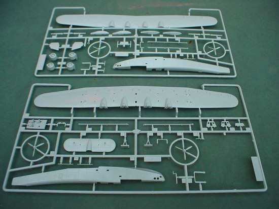 The side observation blisters have to be cut and hollowed out from the fuselage interior. Provision for civilian model as evidenced by the porthole type window recesses on the interior of the fuselage.