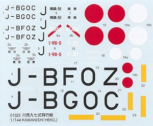 Painting and Markings are included for three Green/Gray and three overall gray craft. There is no biographical data pertaining to the craft. Included are civilian code letters for at least one aircraft, which are not shown in the decal placement guide.