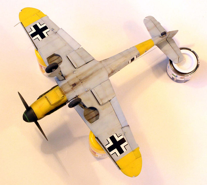 Specific decals came from an Aeromaste decal sheet, which might well be considered “vintage” nowadays. They were called “Errormaster” and certainly earned the name; in this sheet, there are several mistakes (Hungarian “Red 2” turned into “Yellow 2”). I have already pointed out the mistakes in this particular aircraft (aside from a bogus scheme). General insignia came from the kit, exception made of the upper crosses, which came from the F-4 kit, as the style matched better the photos. It must be said that the F-2 decals were glossy and perfectly usable (though the White was “Hasegawish” and contrasted the purer hue in the Aeromaster decals); the ones in the F-4 were terribly matt and fabric-like but they behaved better than expected. Stenciling is unexplainable incomplete (no walkway lines nor footrests and handholds ) so I resorted to some Ed’s. I used DACO setting solution, which affected the latter adversely; then simply nothing. Old style Solvaset was used in the Aeromasters’. But for the lack of stencils, I would rate the decals as fairly adequate.