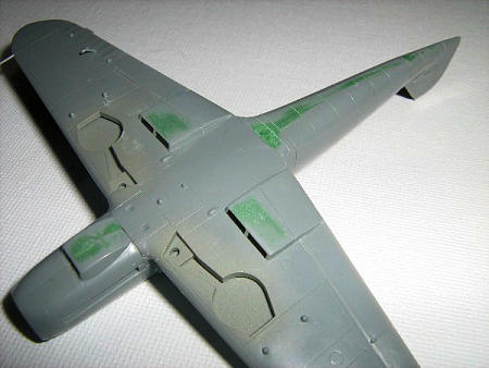 The canopies are near matches, both fit the same with the square cut at the lower forward edge and both would need some filler at this point to look correct. Nearing the end, I found the fit of the Academy tail superior to Hasegawa’s requiring no filing or sanding to get proper fit. The Academy tail itself appears a bit too long in chord and/or too short in height compared to the Hasegawa which also offers a more realistic tail wheel with a well molded dust cover. One fault I picked up right away in the Academy offering was the shape of the stabilizers. They looked far too squared off so I took to sanding them into shape. In retrospect I can see I overdid it but it still looks better than before. These pieces are also slightly deeper in chord then the Hasegawa version. They still don’t look quite right but they’ll do.