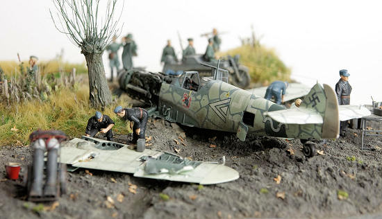 glue your figures with the help of a metal pin. The trench the Bf 109