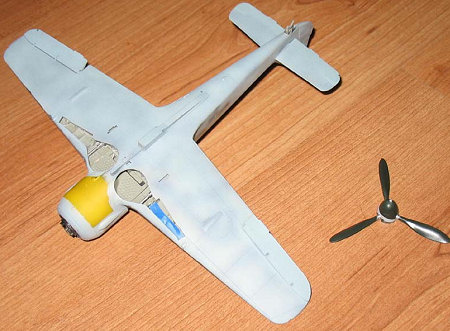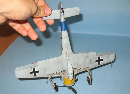 I sprayed the undersides and all the areas that had been sanded with RLM76. Well, something went right because I didn’t need to fill and sand again.