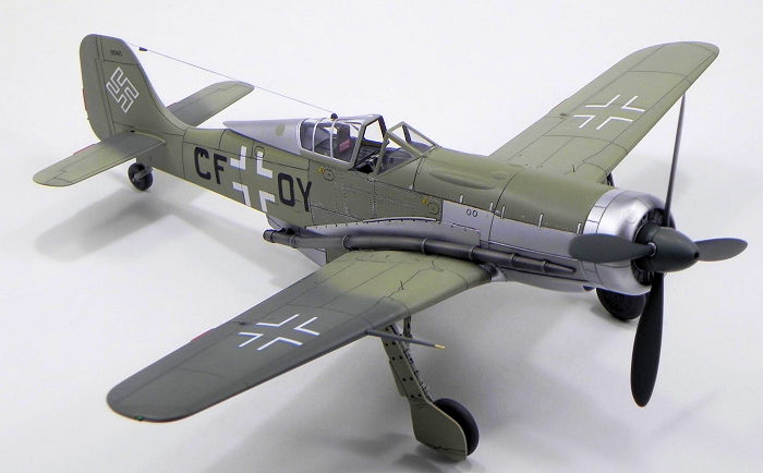 Kurt Tanks’ masterpiece, the Fw-190 Würger was a mainstay of the Luftwaffe fighter force till the end of WWII. Its BMW 801 radial had sufficient performance at low and medium altitudes for the 190 to be an able adversary for most allied aircraft. High altitude performance was greatly hampered however, by the lack of a turbo supercharger. Multiple engineering difficulties prevented the addition of a supercharger to a BMW-powered Fw-190. To solve the problem, Focke Wulf proposed to install 12-cylinder, in-line Daimler-Benz or Jumo engines into 190A series airframes as part of the company’s response to the Höhenjäger (High-altitude fighter) development program instituted by the RLM in 1942.