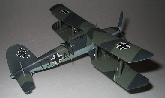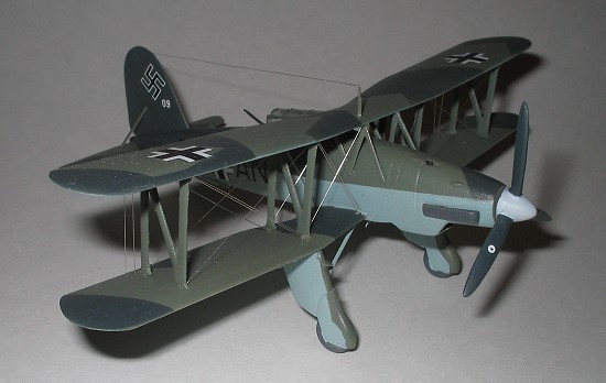 There isn’t a lot of information available on this aircraft. William Green’s Warplanes of the Third Reich has an interesting article about the airplane, including several photos of the aircraft. Other books dealing with Luftwaffe aircraft in general also have short descriptions and sometimes three views. A search of the internet brought up a few sites, including a drawing of a German aircraft with mottled fuselage sides, and another site shows an Fi-167 in what appears to be Croatian or Slovakian markings. The only photos available show Luftwaffe aircraft in the markings shown on the instructions. That is the scheme I used. Just be sure to follow the photos, as they are the best guides.