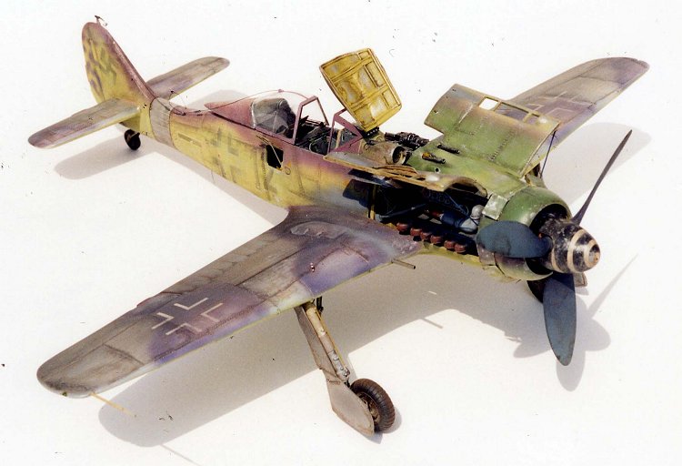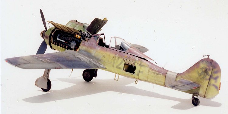 Now that the 1/32nd Hasegawa kit is out there, I better explain why I decided to build the very old Revell kit. First of all, the Revell kit came with a Jumo 213 engine. It was my desire to open up the engine cowling and scratch-build the additional hoses and coolant/oil tanks to make the Dora more eye-catching, so to speak. Secondly, I started the Revell kit almost two and a half years ago in June of 2001 for our local contest here in the Kansas City area. It took first in category. And that was some time before I even knew that the new Hasegawa kit would be released. Glad my Dora was done before the new Hasegawa kit was on the market.