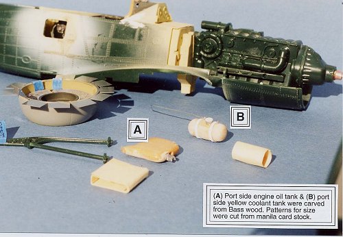 bass wood to get the coolant tank (marked 'B') the right size. Over the