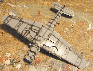 wings and horizontal tail surfaces were done with RLM76 lower surfaces and RLM75 and RLM83 upper camouflage. I