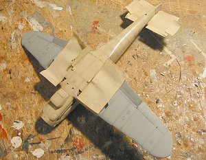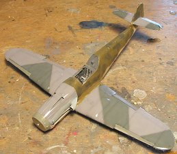 In terms of how this was done, I painted the wings, horizontal stabilizer and engine cowlings first, then masked them off and painted the fuselage camouflage, since it was so different from the rest.