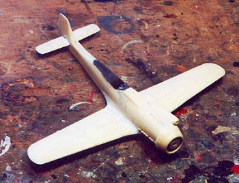 I attached the canopy in the open position, glued the landing gear in position and attached the prop. I then attached gun barrels in the fuselage and wing root positions, made from plastic dowel.