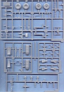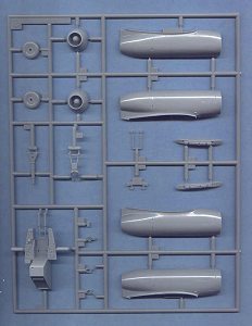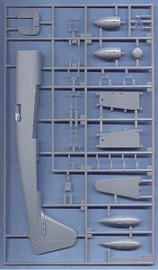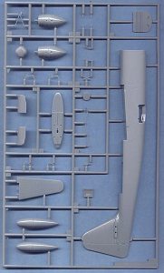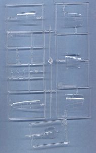 The model is crisply molded in the standard Hasegawa light grey plastic on eight sprues, with the entire nose molded in clear plastic in 5 parts, with the windows for the cameras a separate molding. This is the one place where the model has problems, and these problems are endemic to trying to injection mold clear plastic, which is not as easy as opaque plastic. There are two mold gates for each part, so that enough plastic can be injected to get the whole part without a short shot; unfortunately, this results in a "mold line" inside the plastic of each of the four main parts of the nose. I have heard from other modelers that one can sand down the area, polish it out, dip the part in Future, and the seam will be less noticeable. On the parts in this review copy, it does not seem possible to do anything with sanding. However, the "mold line" is really only visible when the parts sprue is held up to the light and one looks directly at the part; if viewed at any sort of angle (like it will be when completed), the "mold line" is not visible. I do plan on dipping these parts in Future, which should solve the problem as much as it can be. The nose cap does have a mold seam on the middle - this can indeed be dealt with by sanding it off, polishing the part, and dipping it in Future.