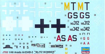 Past these items, there do not appear to be any other obvious surprises in the kit. The decals are thick, as is usual with Hasegawa kit decals - fortunately I purchased one of the Aeromaster Ar-234 sheets several years ago, and - while these were made for the slightly under-scale Hobbycraft kit - they will be far better than the kit decals, since they also include stenciling that is missing on the kit sheet.