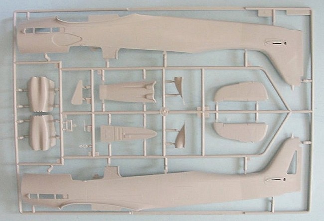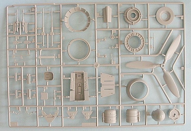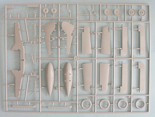 The 150 parts on seven sprues include both early and late gun bay doors, both “flat top” and “bubble” canopies, and main gear with sprung (literally!) oleos.