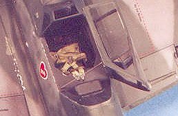 The one problem this particular model had presented at the outset is the real airplane was equipped with the Erla-Haube clear-vision canopy, aka the "Galland Hood," and the kit only comes with the heavy-framed standard canopy. The upcoming Bf-109G-14 release will have the Erla-Haube, but in either case the kit canopies are really too thick for the proper look. Fortunately, Tore Martin at Falcon made a 1/32 Erla-Haube canopy several years ago, and has re-cast more now that the Hasegawa kit is out. This canopy is a bit long to fit the Hasegawa kit if you want it closed (but then, why would you?), but if it is posed open and trimmed slightly, no one will notice the "fit problem." I glued the short antenna mast to the canopy, and glued the canopy in position. The final bit was to make the antenna using nylon "repair thread." I created the insulators with a drop of white glue.