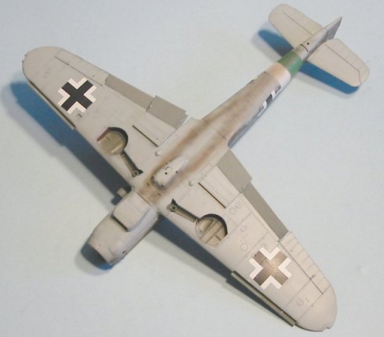 Since the photos of the airplane I was doing clearly showed the Bf-109G-6 prop and small wheel fairings on the upper wing, I used those parts from the kit to construct this model.