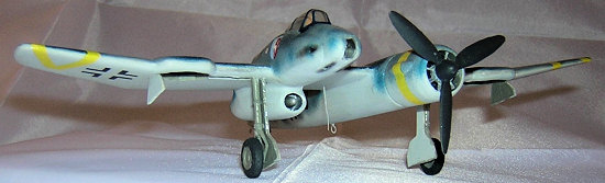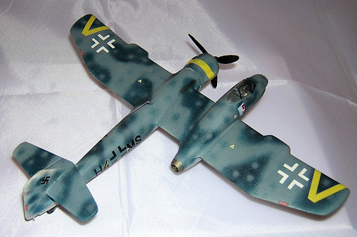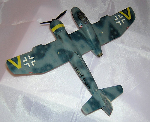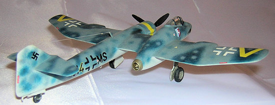 I have not built very many mixed media kits and I found this to be a pleasant challenge and when finished it provided to me a very satisfying result. I'll never understand how BV figured out how to synchronize a propeller engine and a jet engine. Though it has been done. The B-36 looked odd enough but it worked. I can see a multi hued blue German fighter aircraft launching off a Aircraft Carrier deck to engage foes across the ocean. Thank Heavens that Germany did not pattern projective power as the Allies and Japan did.