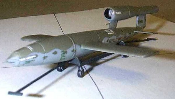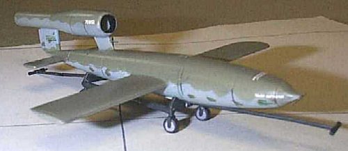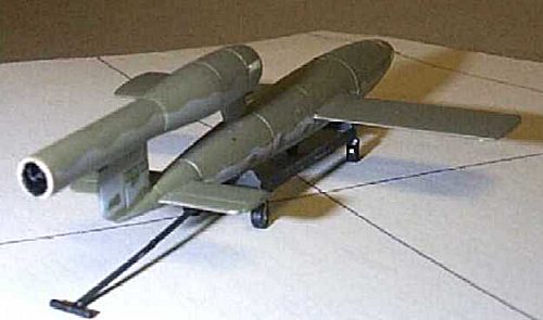 From 1939 to early 1942, while the war was going well for the Axis powers, the Germans turned down proposals made to the RLM for autopiloted aircraft pioneered in the 1930s. However, in June of 1942, when the British were stepping up their raids on German cities by night, and with the Luftwaffe losing increasingly larger numbers of their bombers over England in an attempt to retaliate, the Luftwaffe began to look more closely at the earlier proposals. Paul Schmidt of the Argus Company, with his pulsejet had worked out propulsion for a pilot-less bomb in the early ‘30s. It was little more than a pipe, with a shutter assembly letting air in, where it was ignited by spark plugs in a combustion chamber. This action served to slam the shutters closed, with the hot exhaust escaping out the rear of the pipe, providing thrust. The Luftwaffe approved the development of a small, cheaply made rolled steel bomb with this propulsion system, with a range of about 155 miles and an 1870 lb. warhead of Triatien aluminum. It was developed by Dipl. Ing. Robert Lisser of Fieseler, with a wingspan of 17 feet, 8 inches, length of 27 feet 4 inches, a total weight of 4760 lbs., and speed after launch of 400 mph.