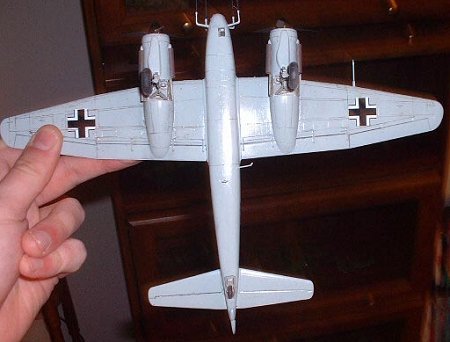 halves. Remember to fill in the bomb rack holes. Make holes for the wing