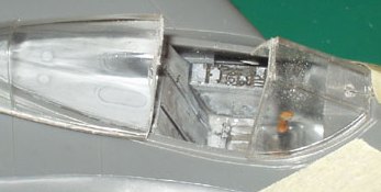 In it’s open position, this backward part of the canopy is a bit wide to fit over the fuselage. To make it fit better, I cut 2 small strips of sheet plastic (0.5 x 1 x 10 millimetres) and glued these to the underside of this part of the canopy, sticking inward. They act as a sort of rail for the canopy to slide on.