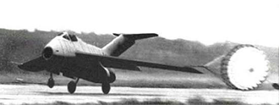 Since good histories of this plane have been provided before, I allow myself to be brief. The Hückebein was one of those rather wild designs the Germans produced during the end of World War II. The aircraft had been fully designed, it had undergone full scale wind tunnel testing, and it might be possible the aircraft had been build after the war, in Russia. Internet resources are undecided; I found a picture of a landing Ta 183, but some say this is a forgery. I don’t know, the picture itself looks pretty convincing to me, although I have my doubts about that parachute (I don’t see any parachute housing in technical drawings I found, and I wonder about the fully deployed chute while the front wheel is still up in the air).