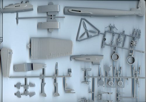 In the standard side-opening Airfix box, you get one bag filled with what could be described as four free-roaming grey styrene sprues, along with free-roaming wings and fuselages. The poor clear bits have to endure the beating of their opaque comrades.