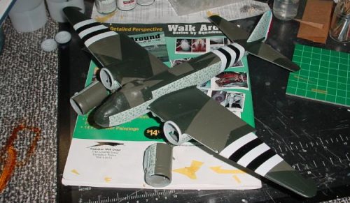 I found the French-operated Ju88A-4 color scheme in Flying Colors, and thought it was just so unusual and eye-catching I just had to do it. The mere sight of invasion stripes on a Junkers should turn heads at any show. In the Spring of 1945, if I were a French pilot I’d want the big, unmistakable ID bands on my German-made airplane, too. The book lists the aircraft as serving with Groupe de Bombardement 1/31 "Aunis" with the Forces Francaises de l’Antlanique, Bordeaux-Merignac, March 1945.
