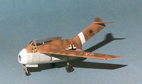 Muenster waited as the Vampires approached obviously oblivious to the Focke-Wulfs waiting above them "Perhaps they are looking below to see if their charges are being attacked yet," Muenster thought. He pushed the stick over and the little jet gained speed quickly, going through the 1000km per hour indicator almost immediately. Muenster picked out his target, a Vampire toward the back of the British cover force. "Why don't they react? Can't they see that we are bearing down on them?" he wondered. Quickly the Vampire grew in his Revi gunsight. Now! He pulled the trigger on the control column and the little fighter shuddered. Hits! The Vampire staggered in the air as the stream of 20mm cannon shells found their mark. Sparkles lit up the Vampire's center section as Muenster's shells tore into its engine. First smoke, then fire, followed by a blinding explosion marked Muenster's first kill of the day.