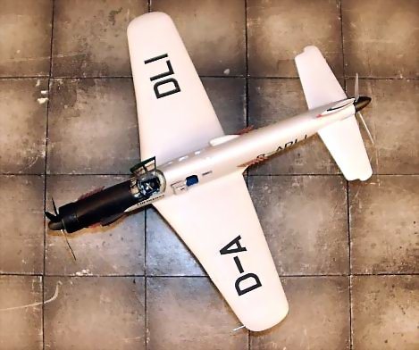 Before joining the fuselage halves, the openings for the exhausts were blanked off, since I didn't install the engines provided in the kit. The cockpit tub was glued to the front gear well insert. After closing of the fuselage it became apparent, that there is not enough spacing between the parts so neither the rear cockpit bulkhead nor the wheel well insert fit very well. I decided to have the large gap in the wheel bay and closed the small gap on the cockpit rear wall with a strip of styrene. Now the engine deckings on the front and rear fuselage and the air scoops were mounted. The gun openings on the front fuselage were sanded and filled. Before gluing the front radiator in place appropriate weighting to keep the nose down was installed in form of lead shot.