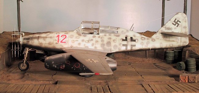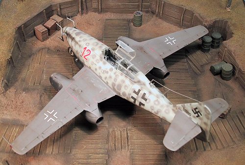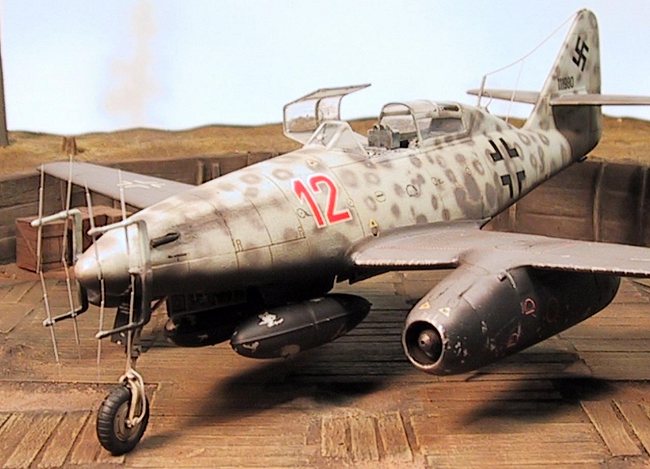 The 262 Nachtjager was a result of the Luftwaffe trying to deal with the mosquito and night raids of bomber command late in the second world war. This particular version was derived from the 2 seat trainers initially built jet conversion of pilots from propeller driven fighters. The first fully operational jet nachtjager was highly successful, in spite of being hampered by lack of fuel, enemy air superiority, and technical disturbances. Flown by Kommando Welter and the 10./NJG 11 in the final months of the war. 'Red 12', wk/nr 111980, survived the war but was subsequently destroyed in a gale at Brize Norton in 1947.