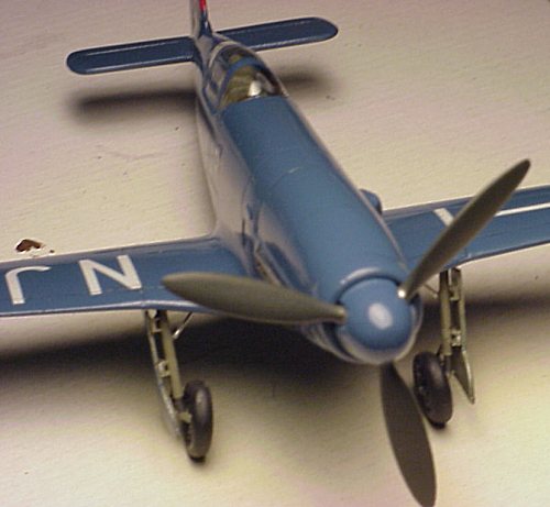 Most of the parts fit well enough, beware of the upper cowl piece, it requires putty to fair it in. After finishing that bit, the overall appearance started taking on the correct shape. The landing gear and doors are next on the agenda. Seeing that the small scale allows for some fudging, the kit parts are used, but for a showstopper I'd recommend a bit more detail, say perhaps the gear from the Hasagawa Me-109E.