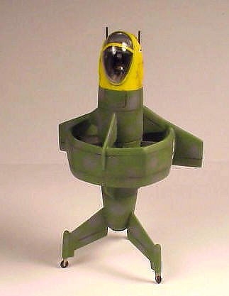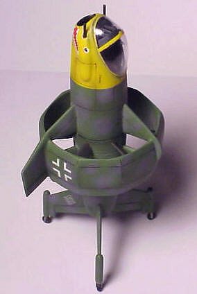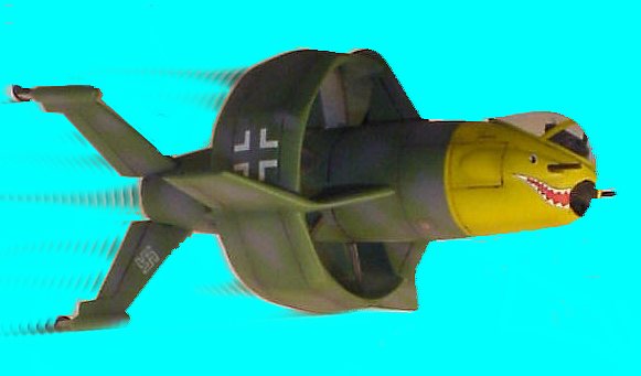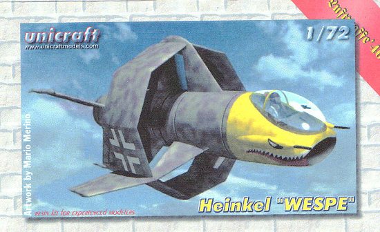 Heinkel designers and dreamers late in 1944 came up with two novel defensive aircraft designs. One was the Lerche and the other a smaller turbo jet powered Wespe VTOL vehicle. Neither design went any further than scratching the designs on paper. As many countries played with the idea of vertical take off aircraft immediately after the war, none was efficient until the introduction of the Harrier in the 1980's. Technology was always catching up with the dreams so it was doubtful the early German designs would have taken flight. The pilot sat upright in this model unlike the aforementioned Lerche, and was armed with two 30mm cannon in the nose.