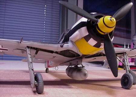 In outward appearance, the A-6 differed very slightly from the A-5, the main stock difference being the addition of a pair of the long-barreled MG151/20 in the outer wing positions. The servicing hatch under these was changed to a flat variety that incorporated a rectangular blister containing an ejection chute for the spent brass. Internal wing structure was beefed up in order to support the heavier weapons load and resulted in the rivet pattern being changed somewhat. Late in this series the wheel covers were also changed to the dish-shaped non-perforated variety that would become standard on later models. Some of the these aircraft were indeed very heavily armed, particularly the A-6/R1, in which the MG151/20s were removed in favor of four of them paired up in WB151 pods slung under each wing; JG-11 received and used several of these in operations.