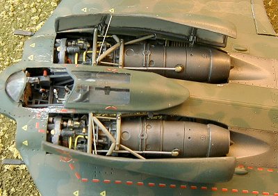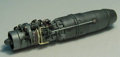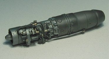 Construction began with … SHOCK … the engines and landing gear, versus the standard cockpit assembly steps. Most of the smaller parts were removed from the trees, cleaned up and painted. The engine halves, bullets and tail cones were painted before inserting them into the hot sections. After the hot sections were assembled, seams were cleaned up and the parts sprayed with various shades of ModelMaster metalizer enamels. I found that many of the smaller bits and pieces for the engines to be rather fiddly … and the instructions were not totally clear on placement. Often, I had to study the drawings for the particular step as well as later drawings to get a good idea of exactly how a particular part was aligned. The color callouts, being only for Gunze Sangyo paints, were of little help … to me, anyway. I did not follow the instructions explicitly, for sections such as the landing gear, except for painting, I held until later.