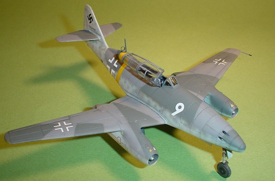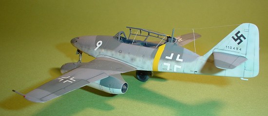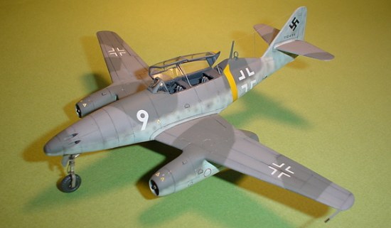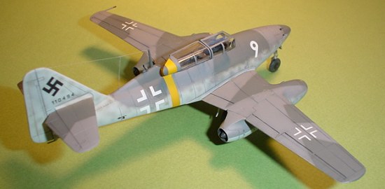 Powered by Jumo 004B the two seat Me 262B-1a was derived from the 262A single seat aircraft. The 262B-1a/U1 night fighter was to be an interim a/c until the introduction of the 262B-2a which had a lengthened fuselage for additional fuel. Short range being one of the shortcomings of the 262’s already in service. The Me 262 B-1a fighter trainer which I have modeled was built in small numbers and was used as a jet conversion trainer when it became clear that there were an alarming number of accidents taking place with the new jet. Only about 15 of the fighter trainers were reported to have been built, these having dual controls and a slightly different cockpit layout from the two seat night fighter version.