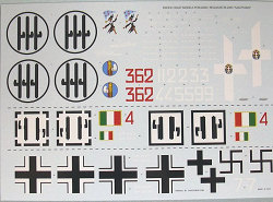 Decals are provided for five aircraft: two flown by the Regia Aeronautica, one flown by the Aviazione Della Republicca, and two by the Luftwaffe. With the addition of side numbers and serial numbers on the sheet, a modeler could do any of the Re.2005s that saw the light of day. The decals are up to the usual standard of excellence one finds with PCM kits.