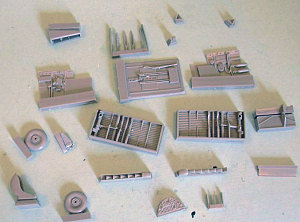 The resin for the nicely-detailed cockpit and the wheel wells is crisp and very effective in the amount of detail that is there. I like that it is almost all molded-in detail, which will simplify construction while resulting in a good-looking cockpit.