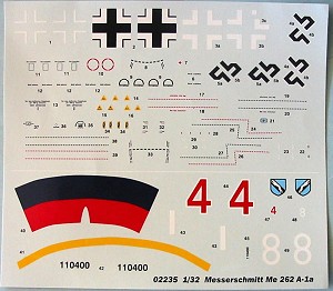 Decals are provided for Walter Nowotny’s “Weiss 8" from Kommando Nowotny, and a Schwalbe flown by Franz Schall of 10/JG7. Eagle Editions has already announced two decal sheets for this kit and it is certain all the other aftermarket decal makers will pounce on this.