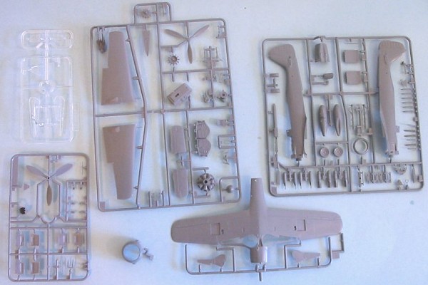 The clear sprue also includes the armored glass side panels used by some R2 airplanes. The extra armor around the cockpit for the R2 is done with self-adhesive plastic sheet.