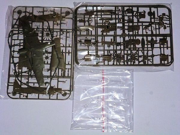 in a top opening box, the kit has 168 parts molded in tan (my A-5 edition, also