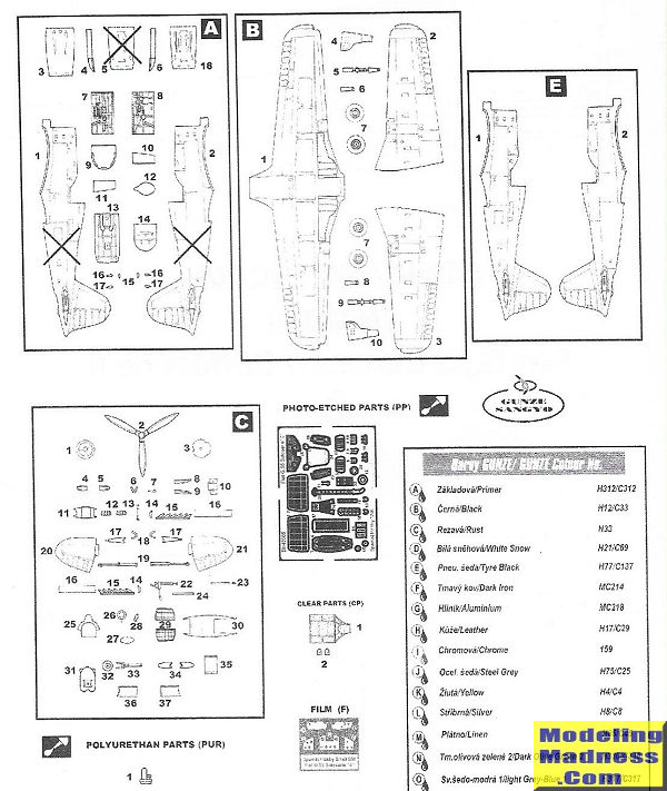 From the instructions: "In 1942, three Italian companies had test flown their new modern fighter prototypes Aermacchi C.205, Reggiane Re 2005 and Fiat G.55. All three aircraft were powered by the DB 605 engine or its license built version RA 1050 Tifone "Typhoon". Eventually, all three types were accepted by the Regia Aeronautica; however, the Fiat G.55 had been selected as the primary fighter aircraft. The German Luftwaffe showed also some interest in the G.55. The first prototype with serial number MM491 took off on 30th April 1942, followed by other two prototypes. Later on an initial series of 12 pre-production aircraft (serial numbers MM91053 to MM91064) were built and designated Serie 1 Sottoserie 0. Armament of these aircraft consisted of one 20mm Mauser MG 151/20 cannon firing through the tubular propellerīs shaft and four nose-mounted 12,7mm SAFAT machineguns. The final armament setup of subsequent aircraft of both Sottoserie 0 and 1 settled on two wing mounted cannons and two machineguns above the engine. Independently of the armament changes the particular airframes were produced with two different fin types. The first production aircraft were assigned to the Regia Aeronautica and proved successfully, particularly against P-38 Lightnings. After signing the armistice and consequent occupation of Italy, the Centauros were captured for Luftwaffe service, as well as the Fiat factory in Turino, which was seized by the Werhmacht.