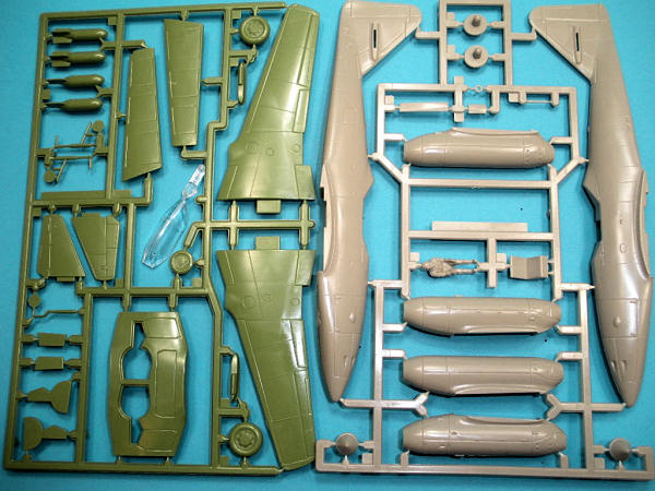 version of this famous jet is cleanly molded in 38 gray and green plastic parts
