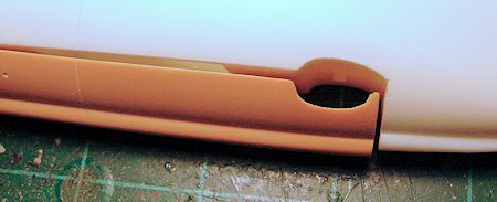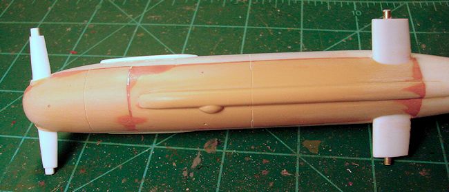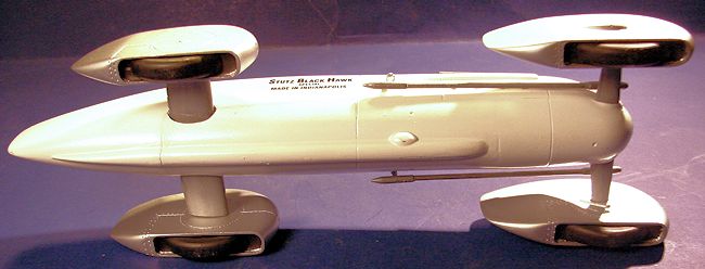 The body and axles were first assembled then painted with Krylon Gray primer and the shot with Krylon Gloss White. The body was then masked and the axles painted with MM Aluminum. This paint was also used on the fairings and steering linkage.