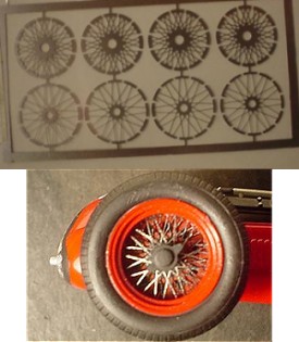 The only addition I made to the model was a set of Herb Deeks Models wire wheels. I highly recommend these sets to anyone who is building a kit that requires wire wheels. Easy to use and reasonably priced ($10 + shipping) the sets include an outer rim, an inner rim and 4 turned aluminum center spindles. The instructions give several different ways to use the wheels and are very easy to follow.