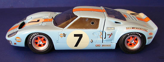 suppose was an attempt to aid in portraying the Gulf colors of the car. The rest