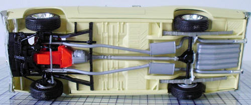 The body is molded one piece with a separated hood and multi piece chassis with separate suspension and exhaust parts. Also there is a nicely detailed interior assembly and not a one-piece tub. The only down side is the body is molded with the Hemi trunk lid so its not correct for the 383 engine. I have also been told the air cleaner is incorrect, my fix for that is keep the hood closed. The engine is suppose to be a 426 Hemi, looks it to me. The chrome wheels are OK but I wished they had included the dog dish hubcaps, which came stock with the car.