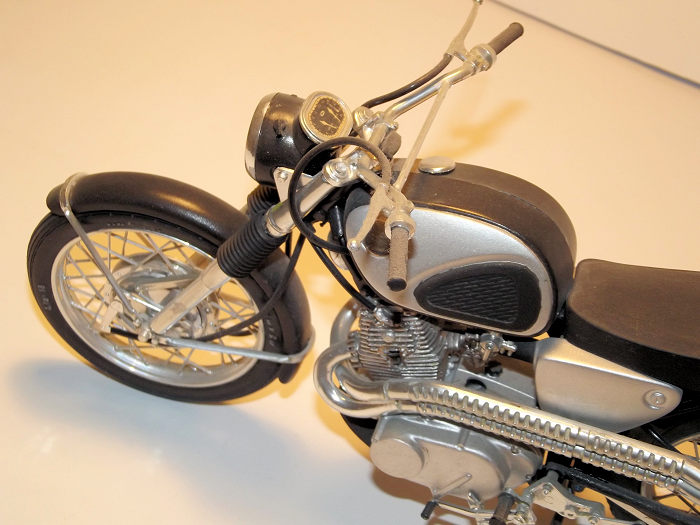 A large scale bike benefits from being built up like the real thing so the basic parts were undercoated while still on the frames using grey auto primer from a rattle can, then airbrushed in Tamiya gloss acrylic. I chose X-1 Black in homage to my trusty steed of bygone days.