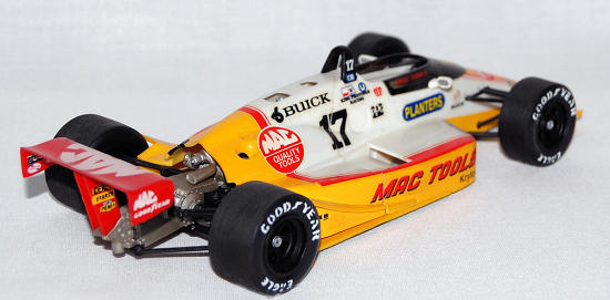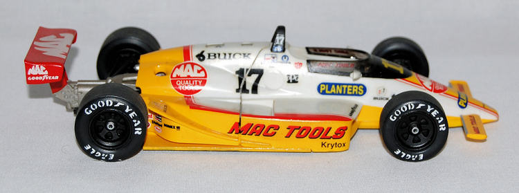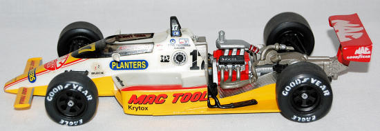 In the late 1980’s Monogram released a series of IndyCar model kits. Each kit covered a different type of chassis and engine combination. This kit is of the Buick Lola combination that was driven by Teammates, 3 time Indy 500 winner , Johnny Rutherford and Jim Crawford in the 1988 Indy 500. Jim Crawford was the only non-Penske driver to lead a lap in that year’s 500 which saw Rick Mears win his 3rd of 4 500’s.