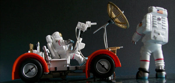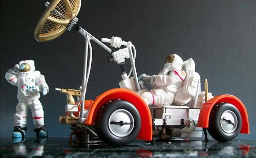 November 2007 a slot car of the moon rover appeared, great for real space