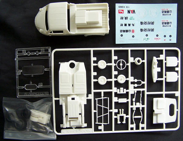 consists of twenty one parts in crisp white plastic, four clear parts, three