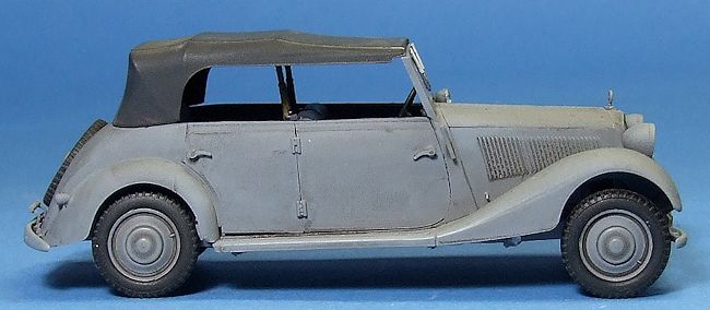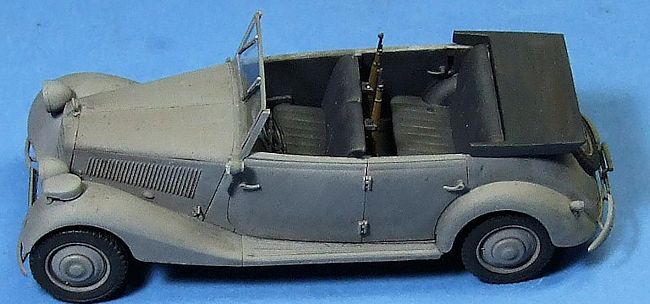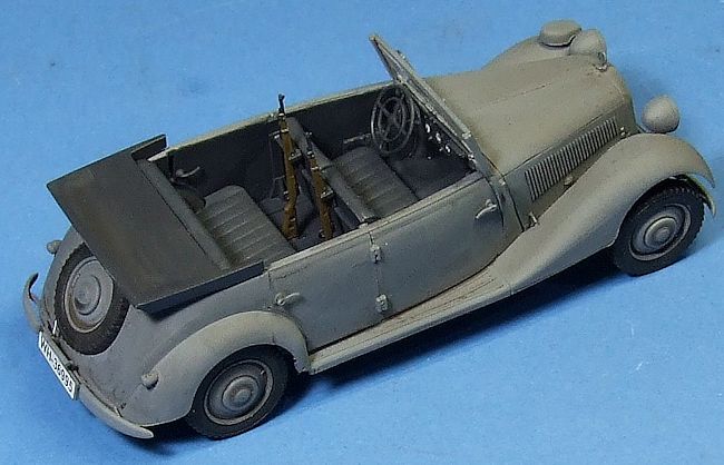 The interior assembles easy enough and is detailed enough for what will be seen. A nice touch is a rifle rack behind the front seat complete with two Kar98 rifles.